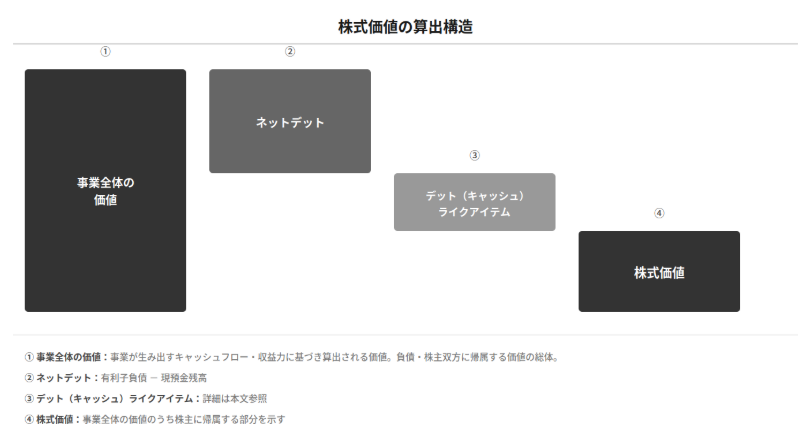 - ネットデットの把握——有利子負債・デットライクアイテム・キャッシュライクアイテムの識別